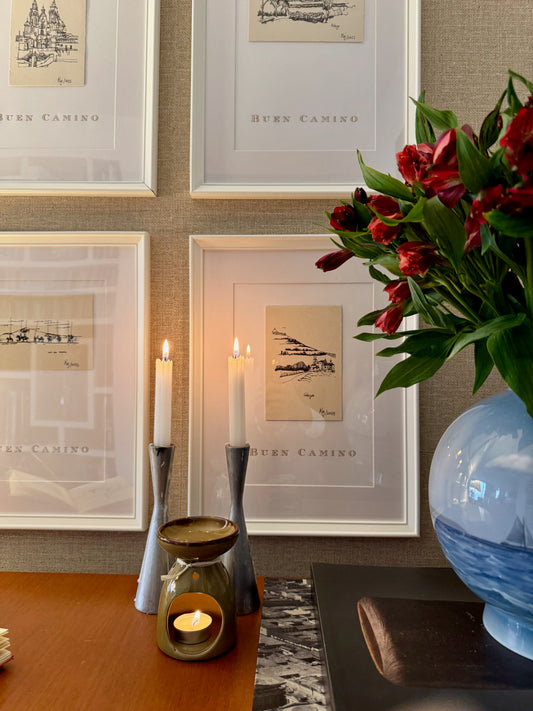 Estos bosquejos que dan cuenta de ese viaje de más de 1000 kilómetros a pie son piezas que aportan belleza y un significado a los hogares de nuestros clientes. Están diseñadas para añadir valor, textura y riqueza en cualquier rincón del hogar. Es el deseo de Muebles&Co. poder compartir estos dibujos para agradecer y transmitir el sentimiento de paz y tranquilidad que brinda El Camino. Las palabras “Buen Camino” pronunciadas por peregrinos y no peregrinos a lo largo de la ruta son más que un simple deseo sino el augurio de una buena travesía en el Camino y en la vida. Cada pieza de esta colección transmite la esperanza de un buen camino al observador en el día, en el año en la vida.